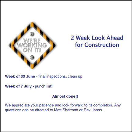 Sheila Callaghan – Trinity Parish in Melrose https://trinitymelrose.org Welcome to The Episcopal Church. Welcome to Trinity Melrose. Thu, 26 Jun 2025 18:22:03 +0000 en-US hourly 1 https://wordpress.org/?v=6.9.3 https://trinitymelrose.org/wp-content/uploads/2025/06/cropped-Shield_of_the_US_Episcopal_Church.svg-e1750527276735-32x32.png Sheila Callaghan – Trinity Parish in Melrose https://trinitymelrose.org 32 32 Renovation Update https://trinitymelrose.org/2025/06/26/renovation-update/ https://trinitymelrose.org/2025/06/26/renovation-update/#respond Thu, 26 Jun 2025 17:48:56 +0000 https://trinitymelrose.org/?p=1333